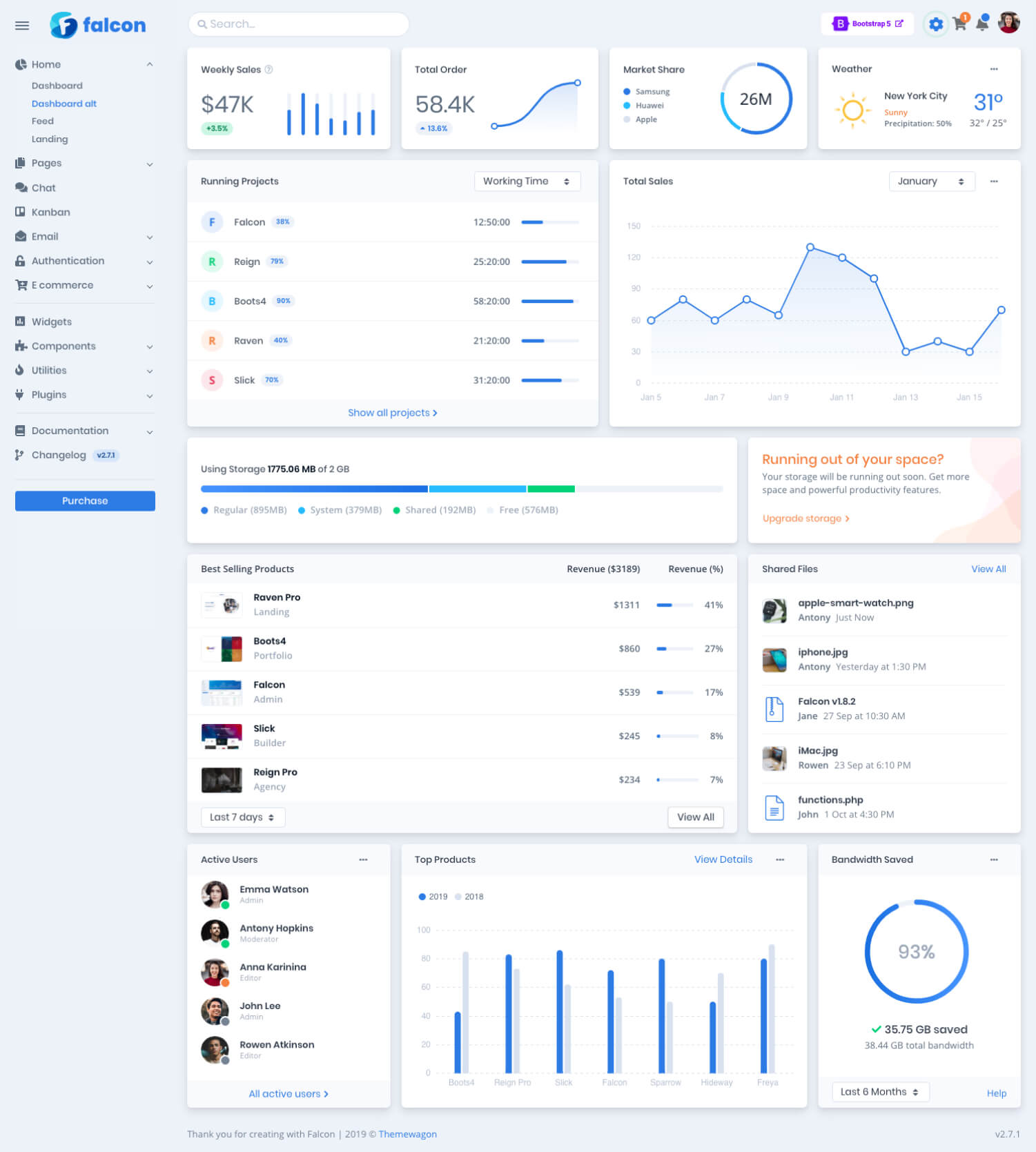 Built on top of Bootstrap 4, super modular Falcon provides you gorgeous design & streamlined UX for your WebApp.